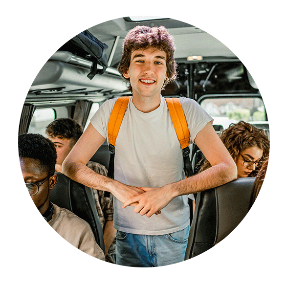 All of our vehicles are equipped with forward-facing and inward-facing cameras to ensure your students and their drivers are protected throughout your entire journey. Visit our Safety page to learn more.
